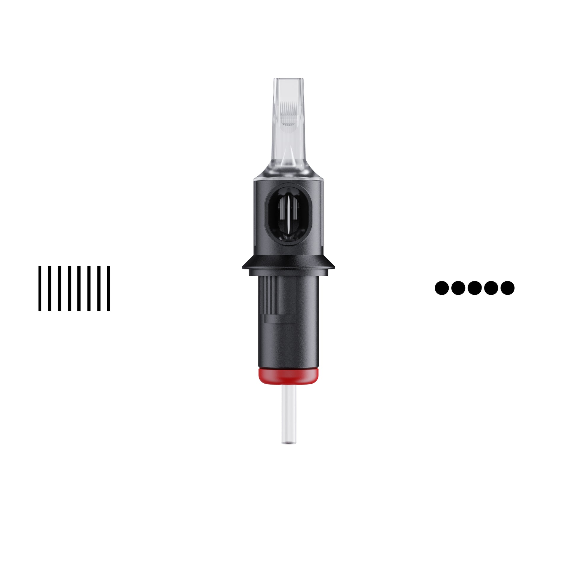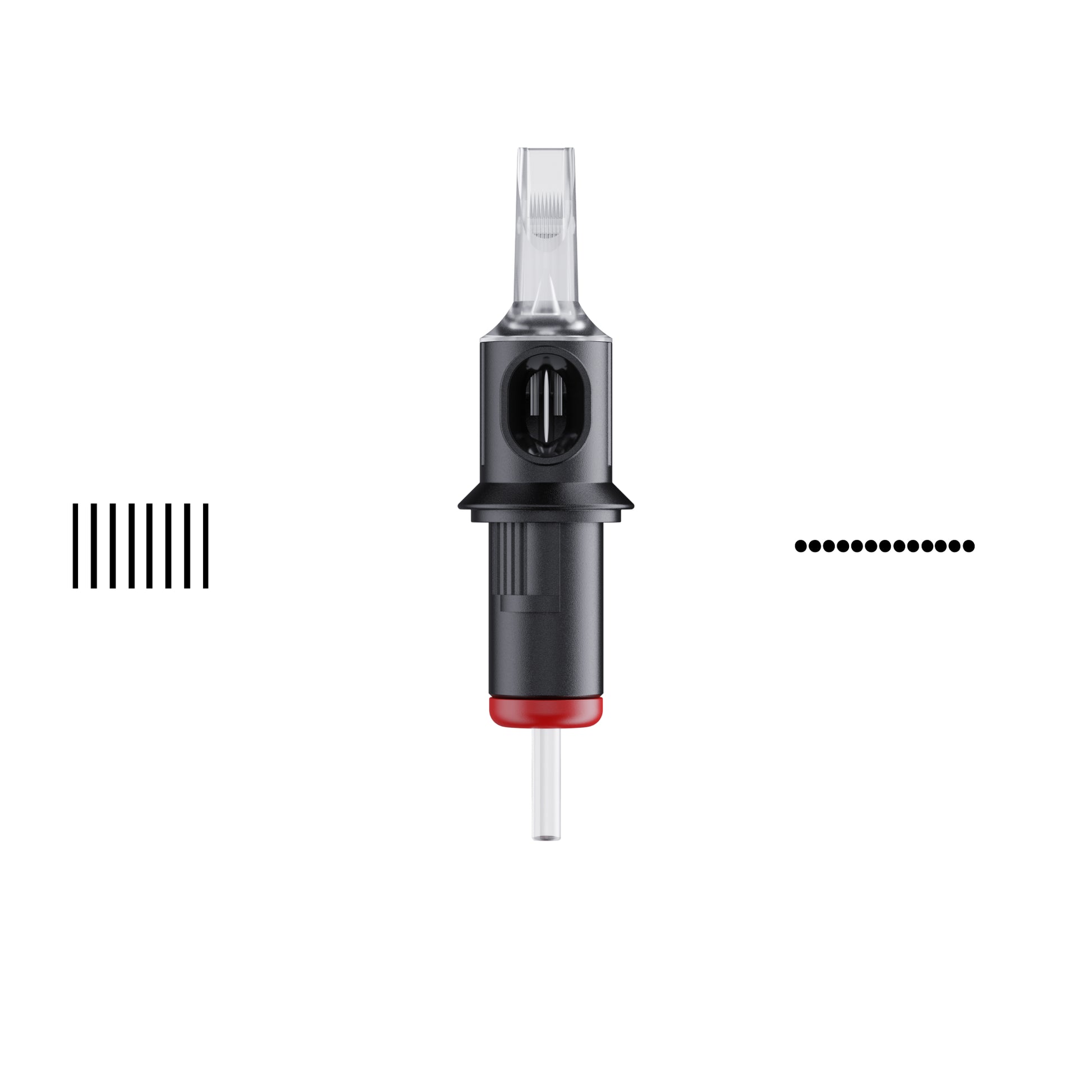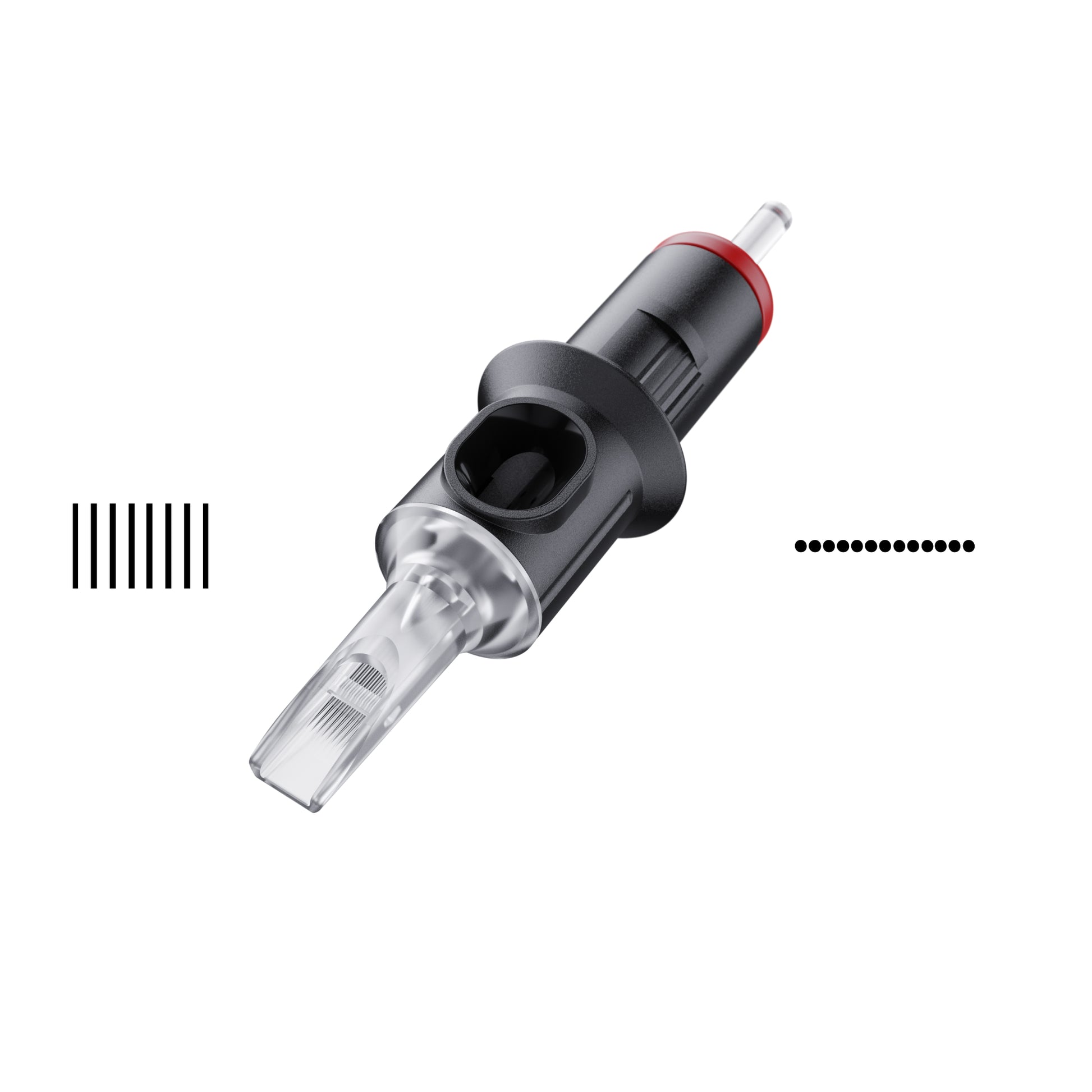The flat tattoo needles have only one row of needles and are great for some geometric forms and special shading techniques. All Cheyenne Safety Cartridges contain a patented Safety Membrane, which prevents blood and tattoo ink from entering the tattoo grip and the associated cross-contamination.