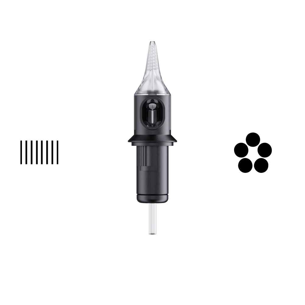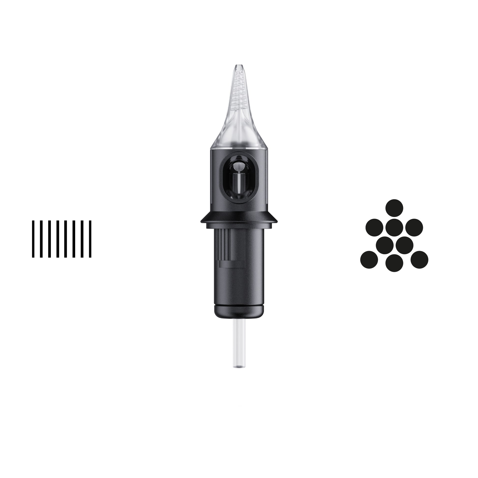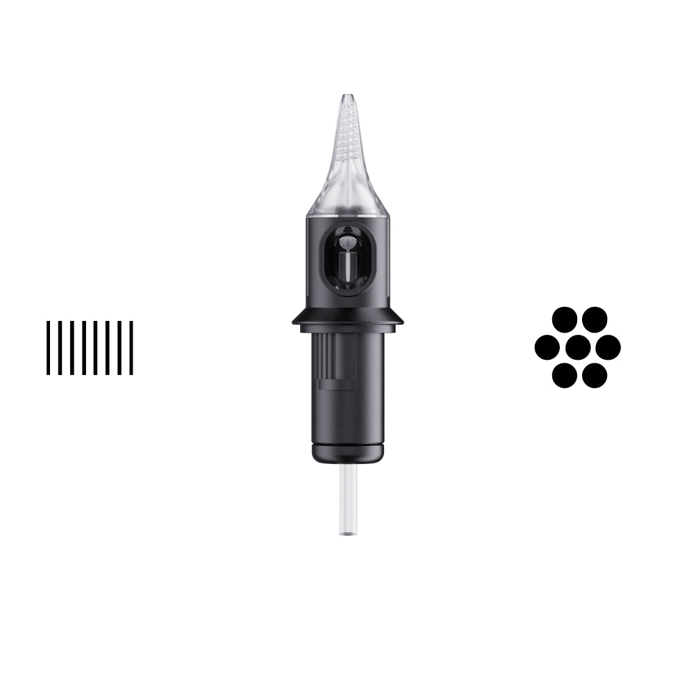The Cheyenne Capillary Cartridges are sterile packed and ready to use. The tattoo needle cartridges are available in 20-piece boxes.The revolutionary Capillary Cartridges de Cheyenne will save your precious time and make your work more efficient. They hold much more ink than conventional tattoo cartridges - all you have to do is to dip a little longer than usual. They also have an improved needle guidance, which makes these cartridges extremely precise. It means there is no need to overdraw the lines and you can draw lines in any direction. All individual tattoo needles within the Capillary Cartridge are evenly covered with ink, even in large magnums, which results in a consistent ink flow to fill any area even quicker without going over it for the second time.