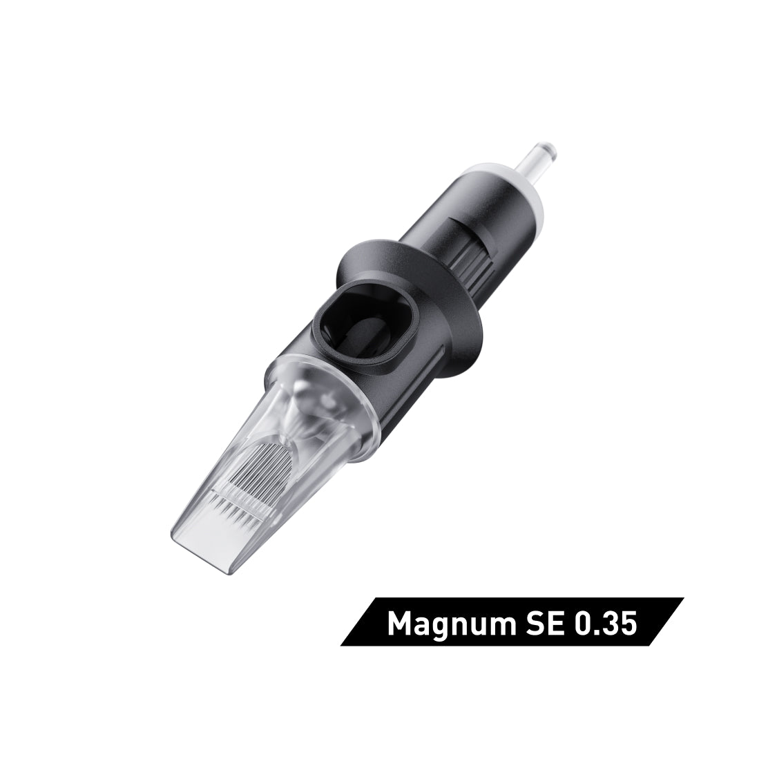 The magnum tattoo needles consisting of two rows are great for filling and shading. The soft edge magnum tattoo needles (or "curved magnums") have a slightly rounded front to avoid the umbrella effect (the skin doesn't evade the needles in the middle and the design remains even). All Cheyenne Safety Cartridges contain a patented Safety Membrane, which prevents blood and tattoo ink from entering the tattoo grip and the associated cross-contamination.