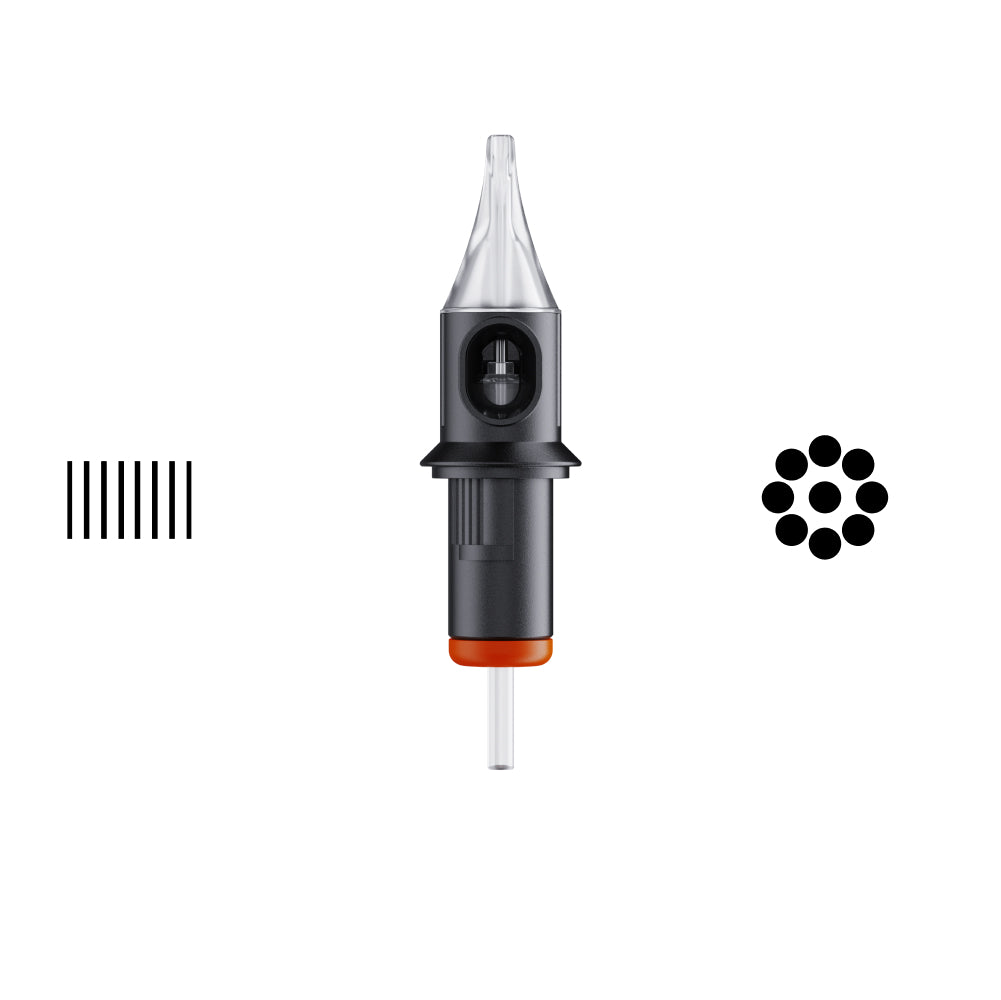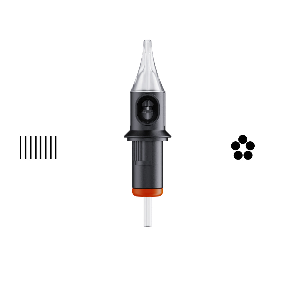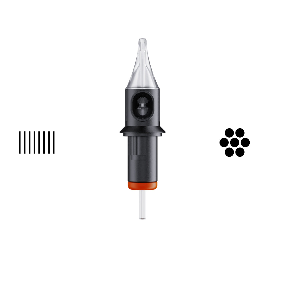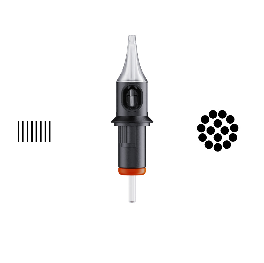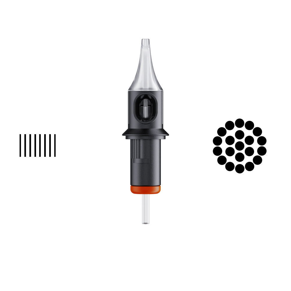Open Liners, the new configuration group of Cheyenne Safety Cartridges, are specially designed for artists who need thick, rich lines. The cartridge's individual needles run parallel along their entire length, as with the shaders, but the needle packages of the Open Liners are stiffer and the individual needles are sharper.
