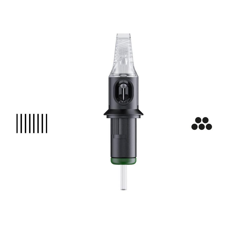 The Cheyenne Capillary Cartridges are sterile packed and ready to use. The tattoo needle cartridges are available in 20-piece boxes.The revolutionary Capillary Cartridges de Cheyenne will save your precious time and make your work more efficient. They hold much more ink than conventional tattoo cartridges - all you have to do is to dip a little longer than usual. They also have an improved needle guidance, which makes these cartridges extremely precise. It means there is no need to overdraw the lines and you can draw lines in any direction. All individual tattoo needles within the Capillary Cartridge are evenly covered with ink, even in large magnums, which results in a consistent ink flow to fill any area even quicker without going over it for the second time.