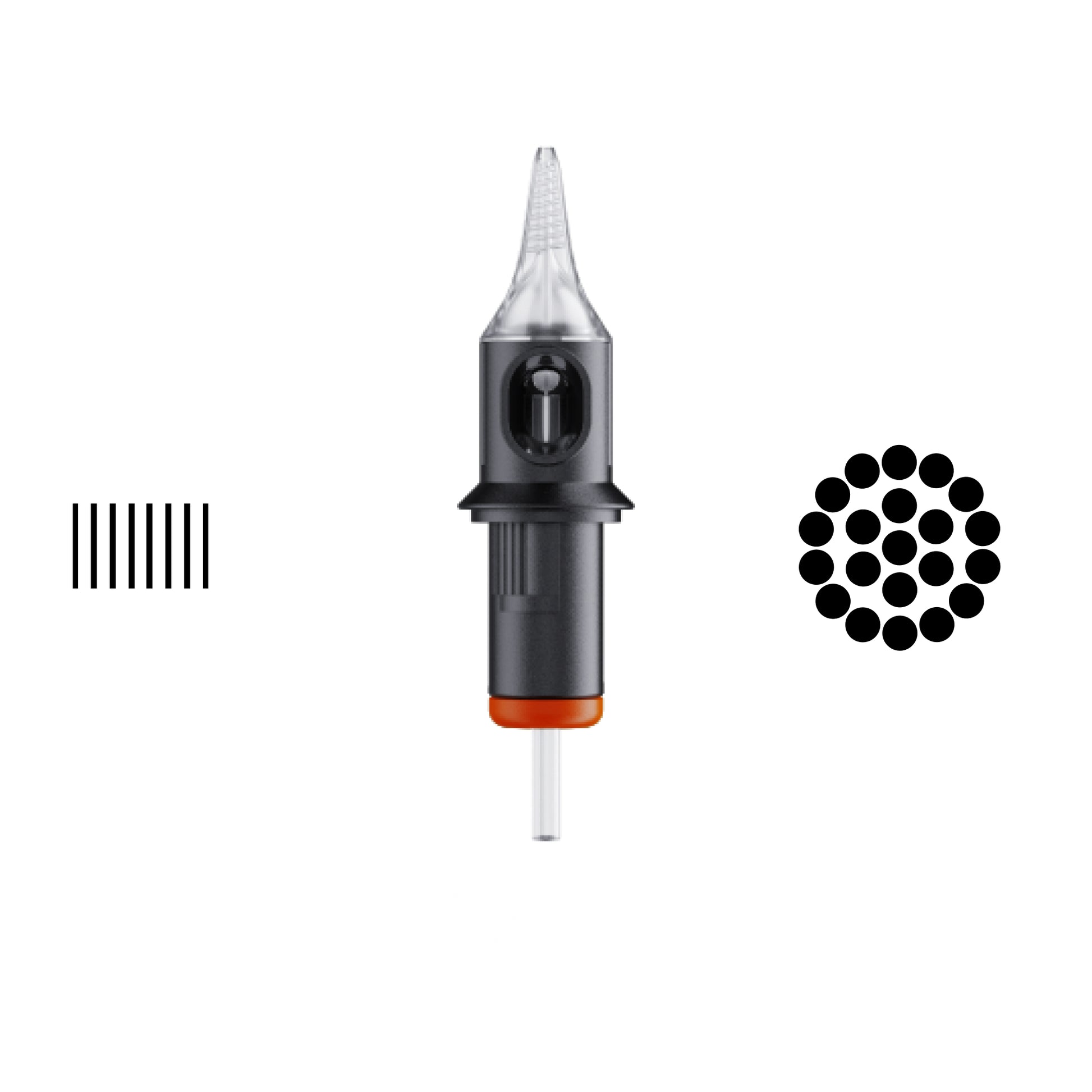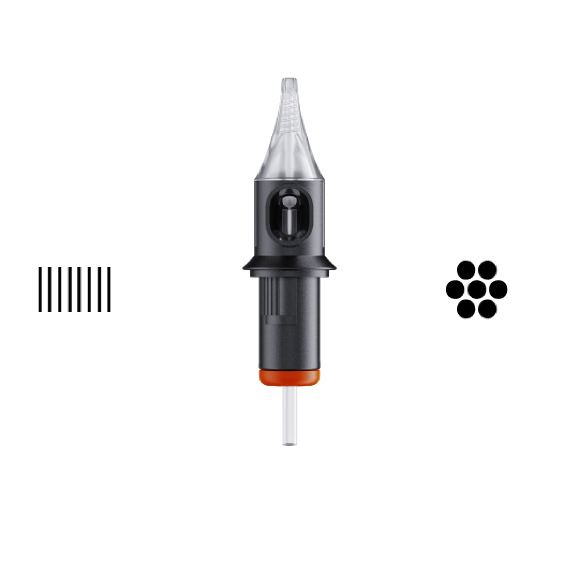 The revolutionary Capillary Cartridges de Cheyenne will save your precious time and make your work more efficient. They hold much more ink than conventional tattoo cartridges - all you have to do is to dip a little longer than usual. They also have an improved needle guidance, which makes these cartridges extremely precise. It means there is no need to overdraw the lines and you can draw lines in any direction. All individual tattoo needles within the Capillary Cartridge are evenly covered with ink, even in large magnums, which results in a consistent ink flow to fill any area even quicker without going over it for the second time.