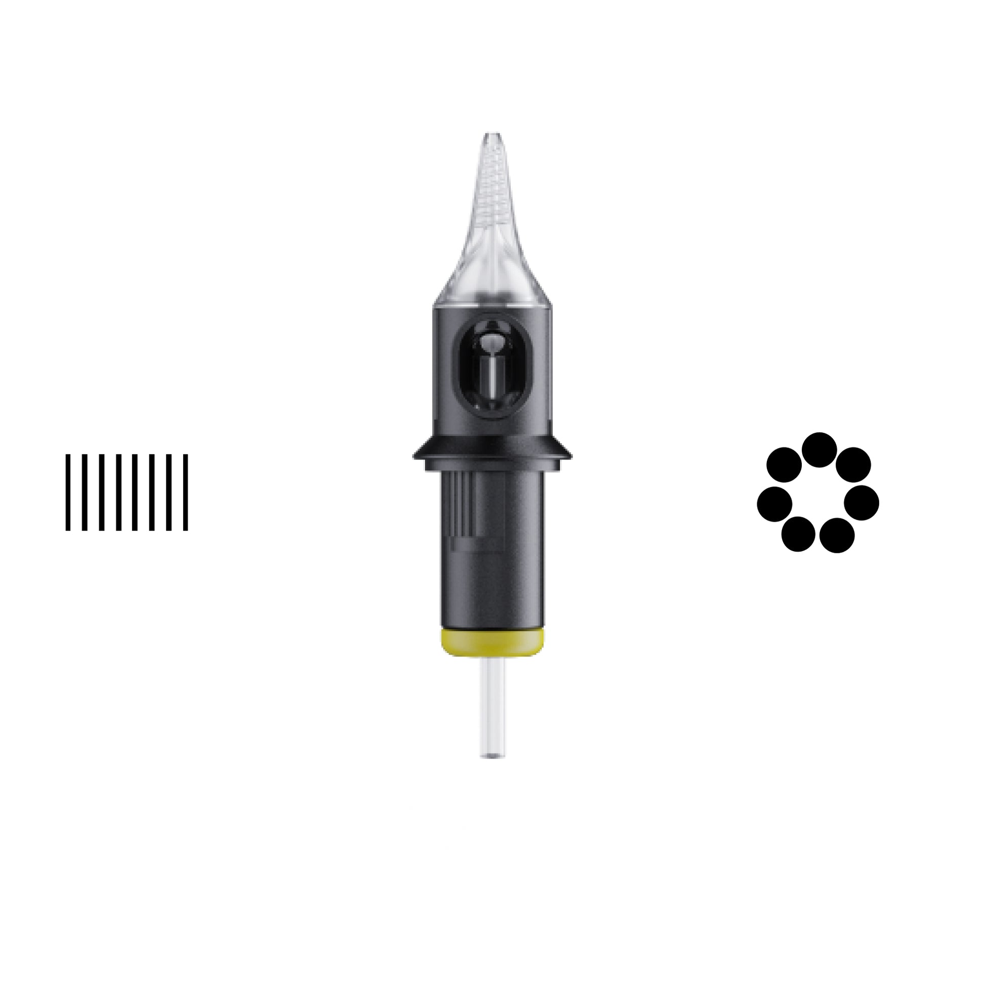 The shader tattoo needles are packed not as tight as the liners and can cover a larger surface area. They can pick up more ink and can be used for shading, coloring and blending. All Capillary Cartridges de Cheyenne contain a patented Safety Membrane, which prevents blood and tattoo ink from entering the tattoo grip and the associated cross-contamination.